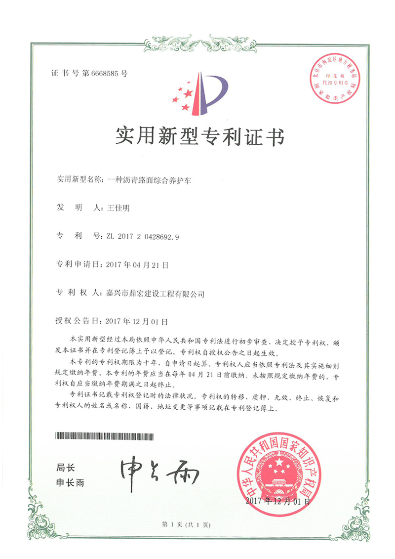 一種瀝青路面綜合養(yǎng)護車2017( 王佳明)
